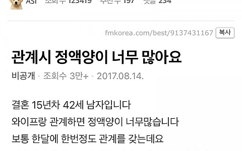 사정할 때 양이 말도 안되게 많이 나와서 걱정이라는 남자(+의사답변추가ㄷㄷ)