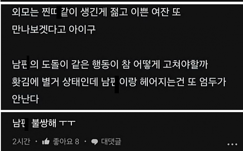 남ㅈ..r한테 ㅅㅅ하고 싶다고 질척거리던 여ㅈ..r
