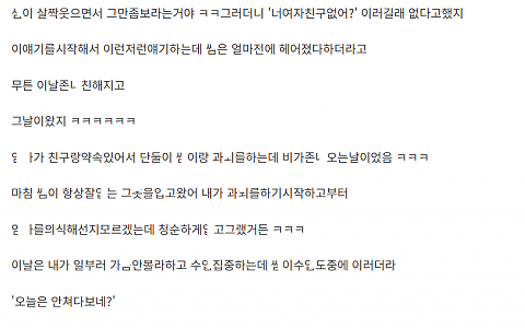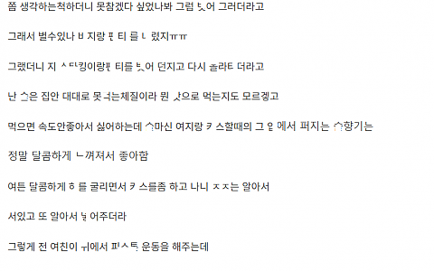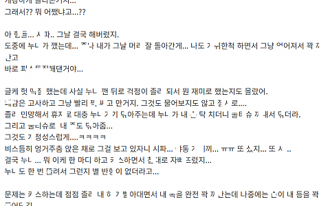 ㅎ원 선ㅅ님 거ㄷ한 ㄱㅅ 보고 ㄲ려서 데ㄷ라고 한 이야기