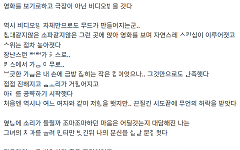 어ㅍ로 만난 ㅈ소 대리녀와 ㅁㅌ 가서 속도위반한 이야기