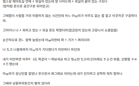 헬스장 ㅅ워실에서 ㅇ덕 아ㅈㅁ ㅂ긴 이야기