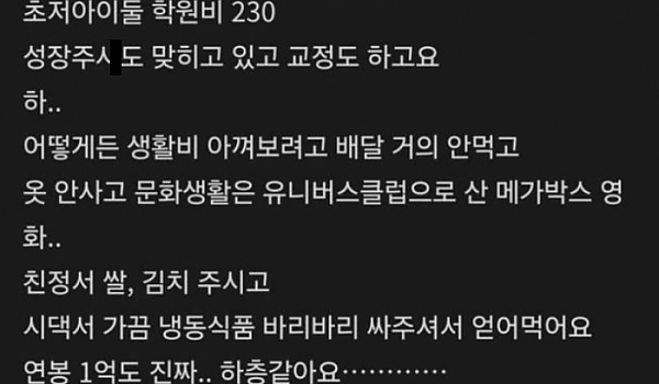 맘카페 남편 연봉 1억 팍팍설
