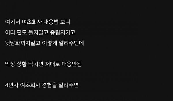 여초회사 4년차 디시인이 알려주는 남직원 생존법