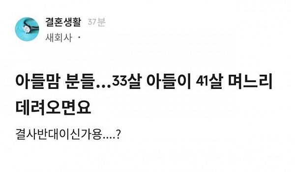 아들맘 분들 33살 아들이 41살 며느리 데려오면 어쩌실껀가여??