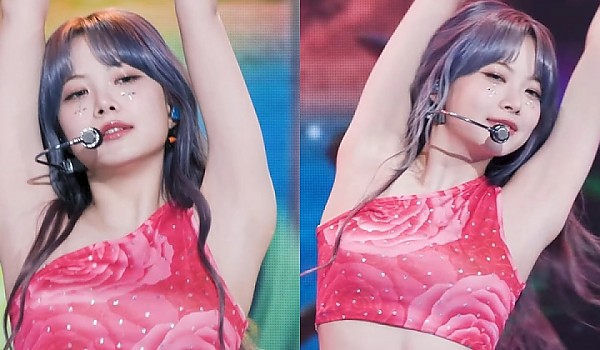 핑크색 탱크탑입고 역대급 안무 선보인 르세라핌 은채.gif
