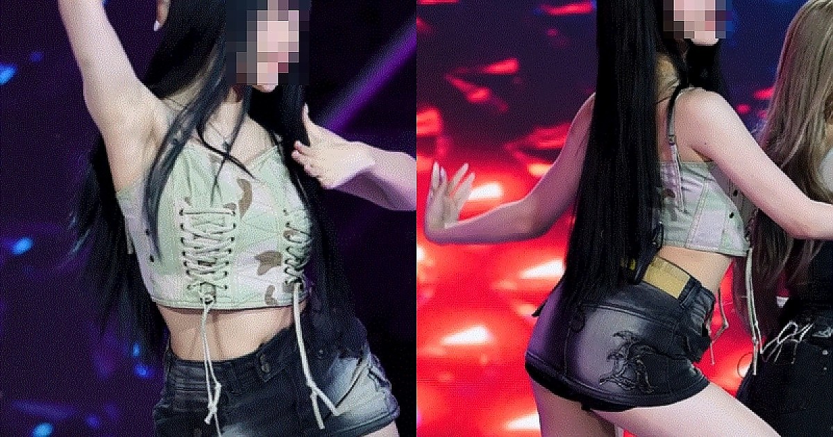 얼룩무늬 나시에 짧은 청치마 의상 입고 역대급 무대 선보이는 아이돌..ㄷㄷㄷ