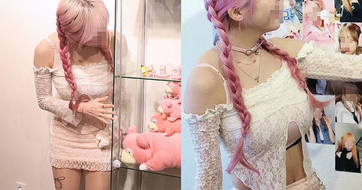 리본 스타킹에 역대급 시스루 오프숄더 의상으로 본인 생일카페 방문한 아이돌..ㄷㄷㄷㄷ