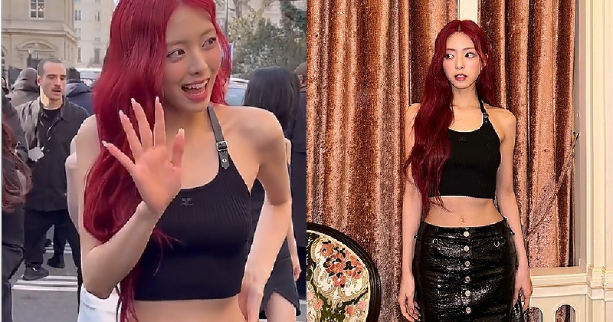 검은색 골지 나시티와 에나멜 롱치마를 입은 잘록한 허리와 매력적인 쇄골을 타고난 ITZY의 유나(영상)
