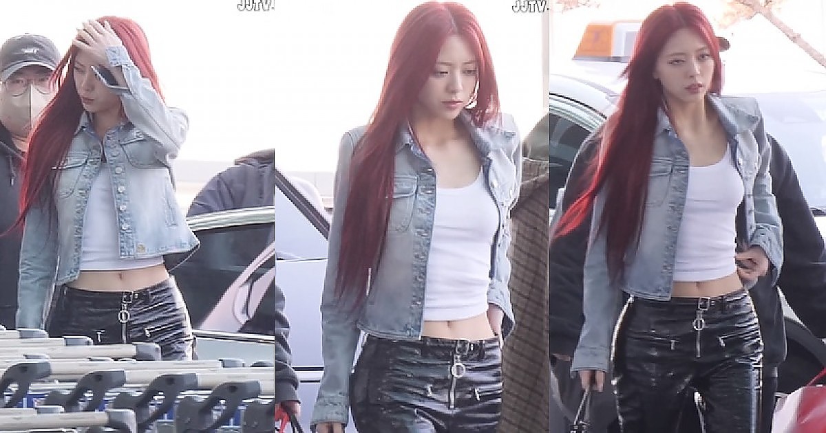 공항 패션으로 '흰나시'에 에나멜 바지 입은 ITZY 유나