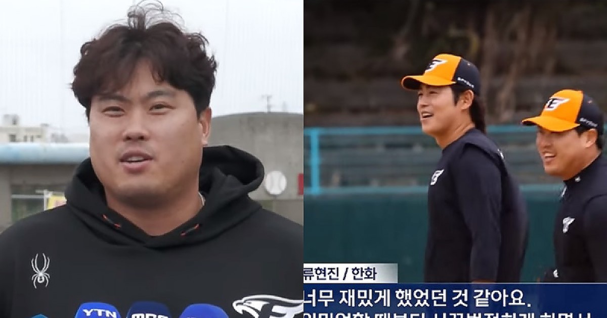 프로야구 한화로 돌아온 류현진 선수가 스프링캠프 합류 이후 처음으로 단체 훈련을 소화했는데요.