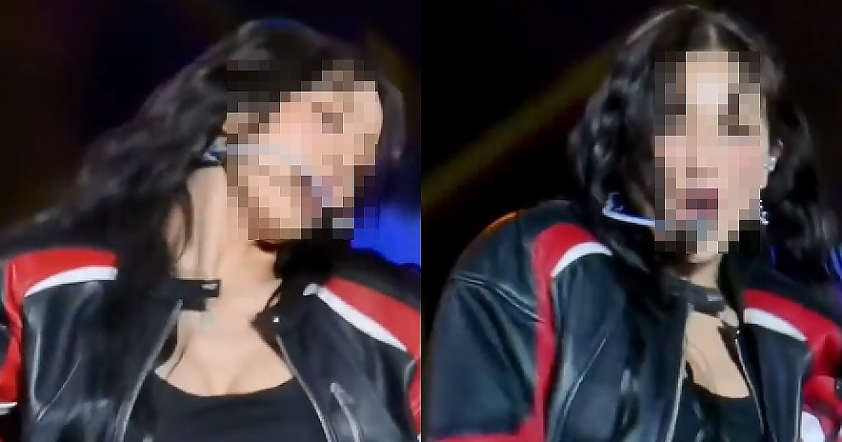 펄럭이는 라이더 점퍼 속 시스루 의상으로 무대하는 아이돌 (영상)