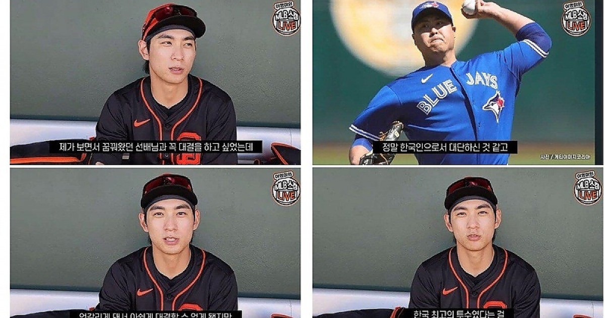 류현진을 보면서 꿈을 키웠던 이정후가 맞대결을 못하는 거에 대한 아쉬움을 토로했다