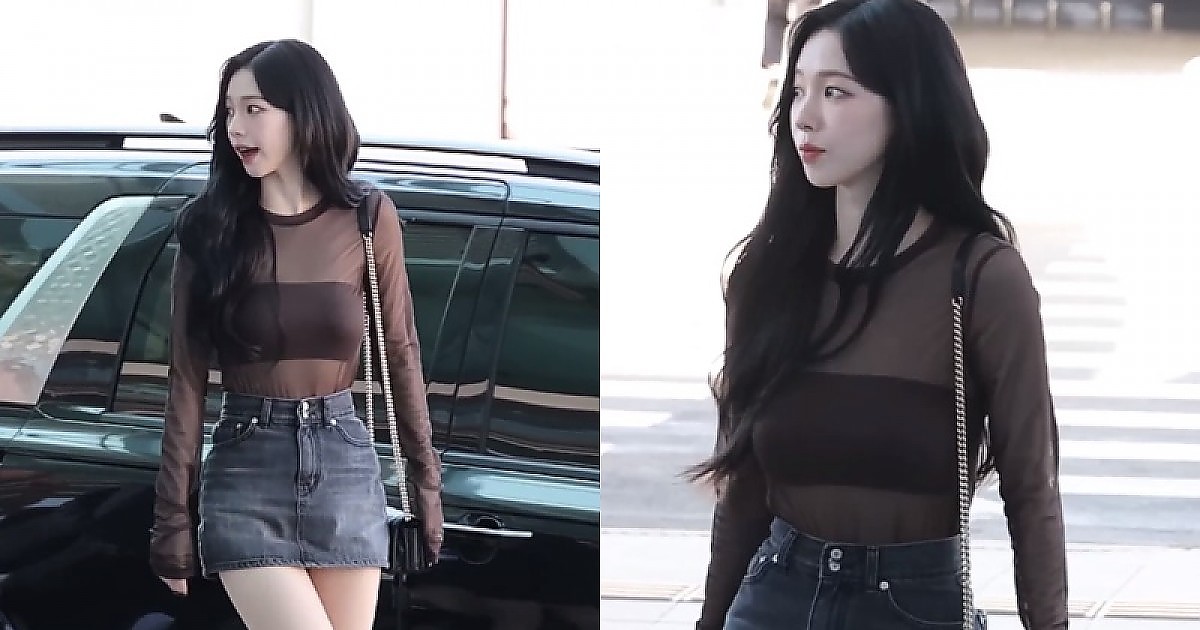 남다른 분위기를 뽐내며 시스루 + 청치마 입은 공항패션의 완성 에스파 '카리나'ㄷㄷ