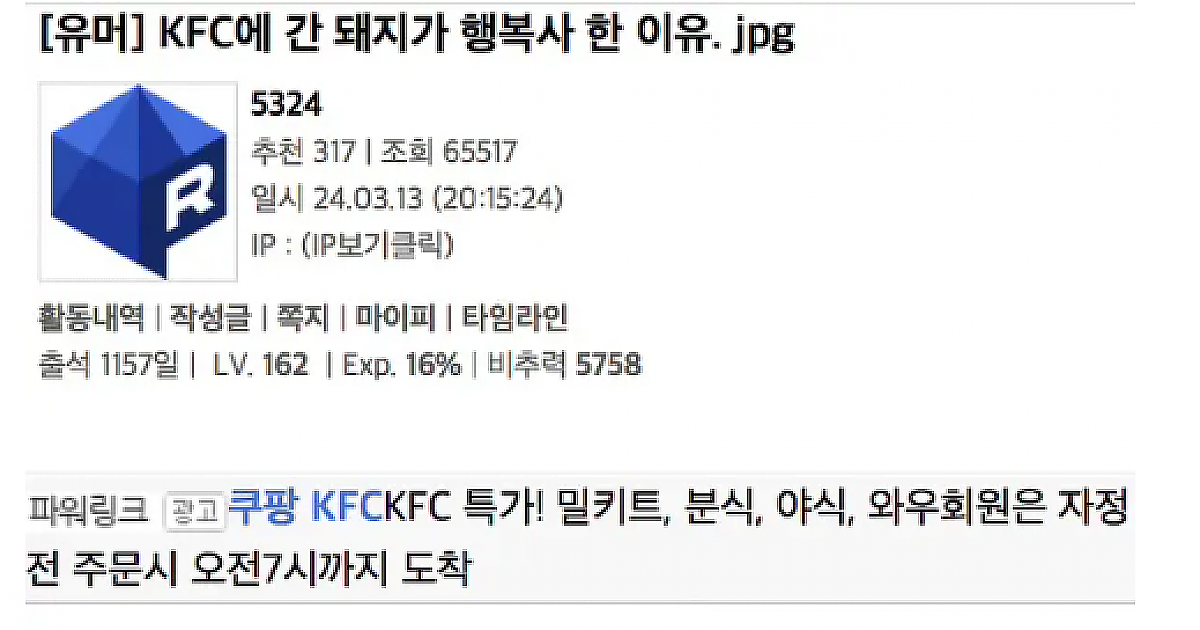KFC에 간 돼지가 행복사 한 이유