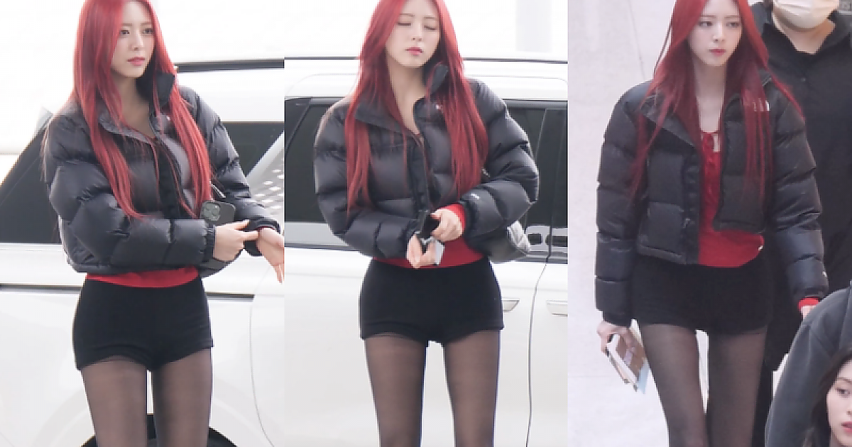 '블랙 핫팬츠' 공항패션으로 드러내는 '아름다운 각선미' 있지의 유나