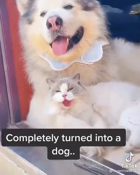 댕댕이랑 같이 자란 고양이