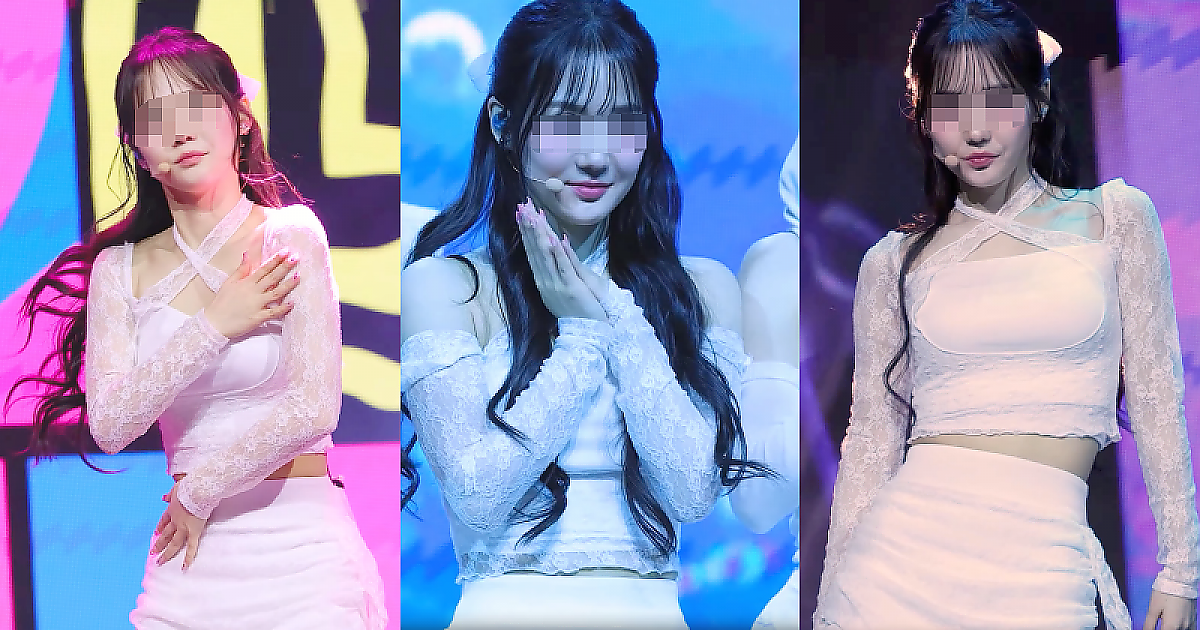 순백의 타이트한 의상과 앙증맞은 표정의 아이돌(영상)