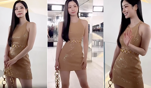 뉴욕 '마이클 코어스 쇼'에 참석한 트와이스 다현의 아름다운 드레스 몸매 라인(영상)