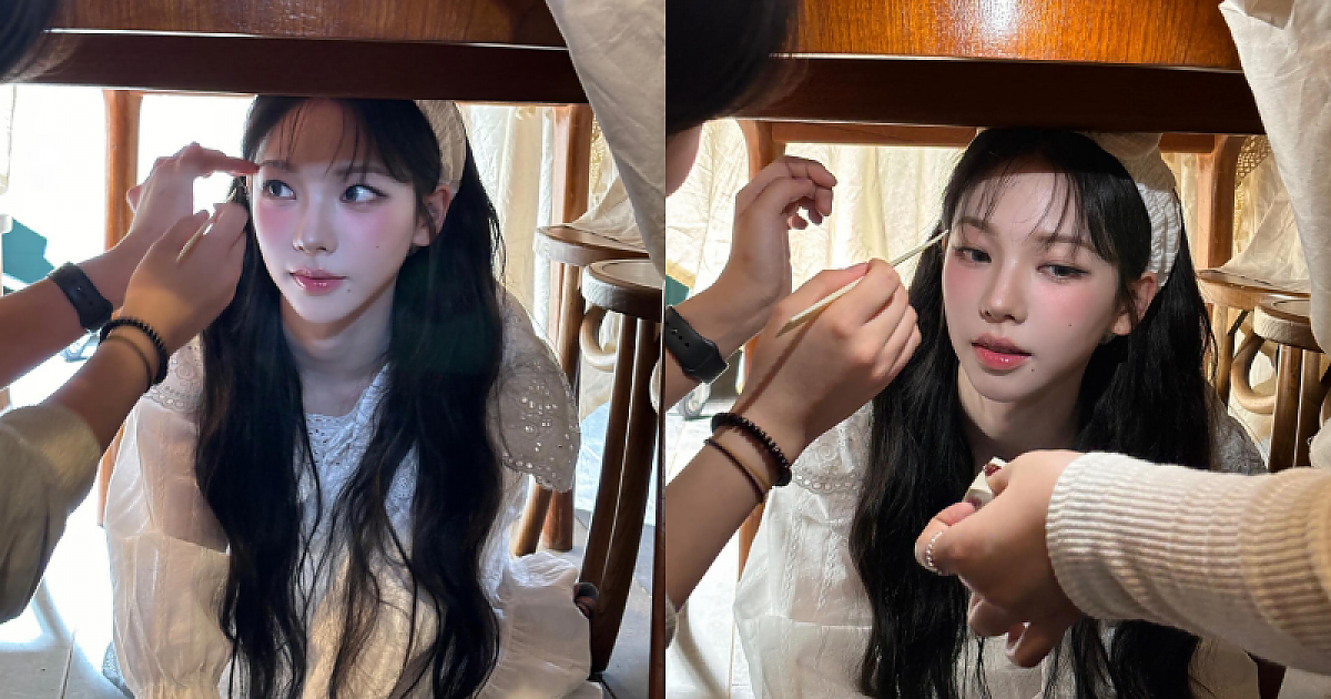 '식탁 밑'의 러블리한 '순백색 잠옷' 에스파 카리나 미모