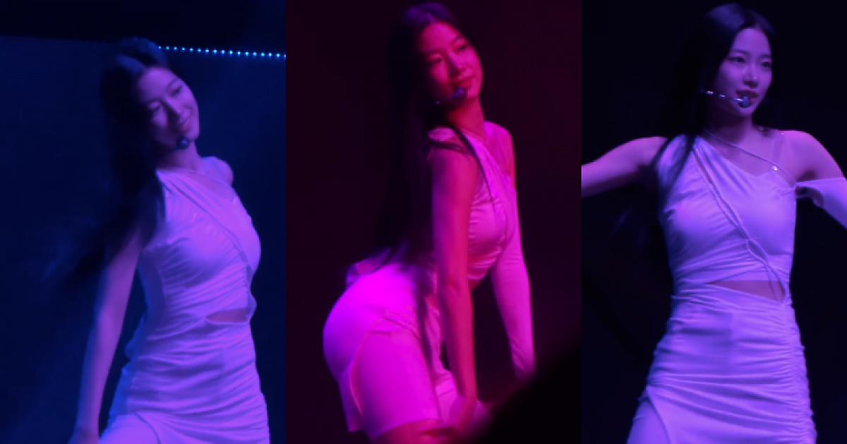 (영상) 빨간 조명 밑에 '르세라핌 카즈하' 밀착 원피스