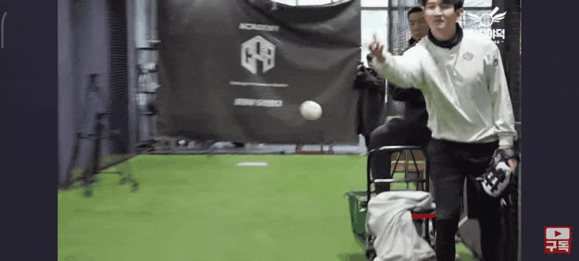 [최강야구] 투수처럼 던졌을 때보다 포수 때 앉아쏴처럼 던졌을 때 구속이 더 높은 박재욱 비교영상.gif