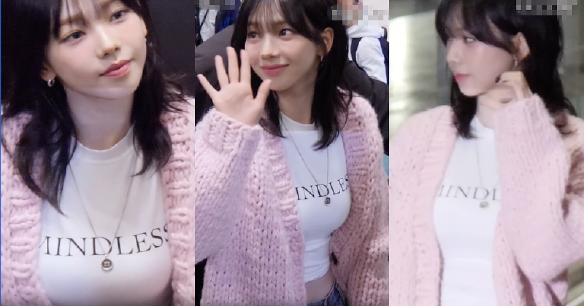 '핑크 가디건과 새하얀 크롭' 의상으로 드러내는 아름다운 외모 에스파의 '카리나'(영상)