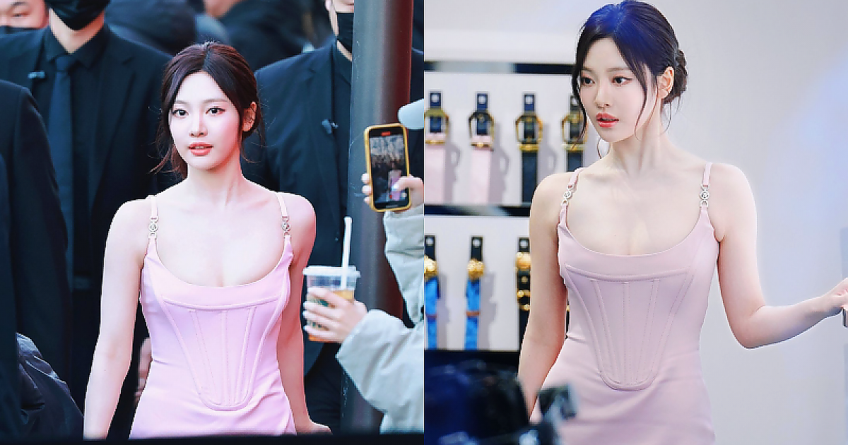 '핑크 코르셋' 의상 컨셉으로 아름다운 외모 드러내는 '닝닝'의 피지컬