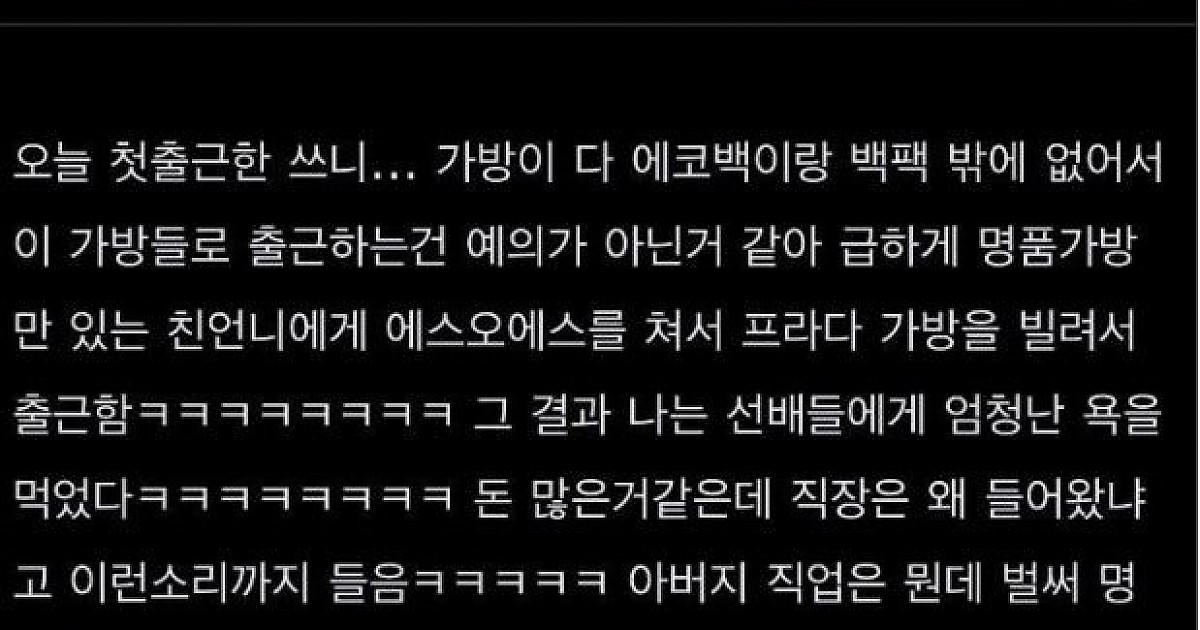 첫출근에 명품가방 들고 감