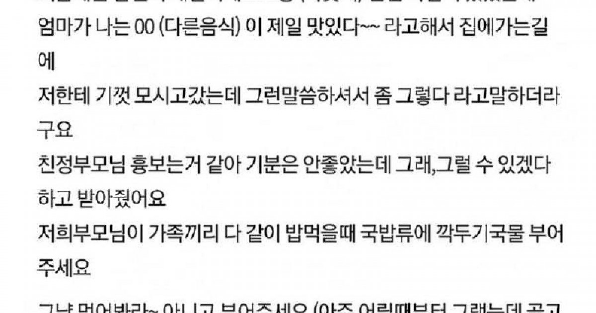 추어탕에 깍두기국물 부었다고 장모님과 싸움 ㄷㄷ