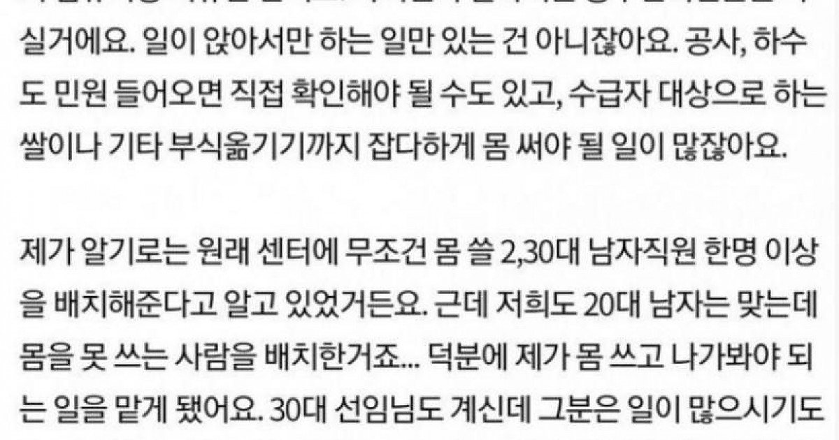 몸 쓸 20,30대 남자직원이 없다는 공무원