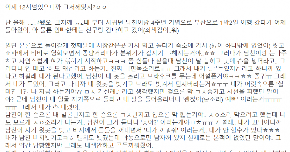 4주년 기념으로 남친이랑 여행 간 ㅇ-i린여ㅈ..r의 ㅅㅅ후ㄱi