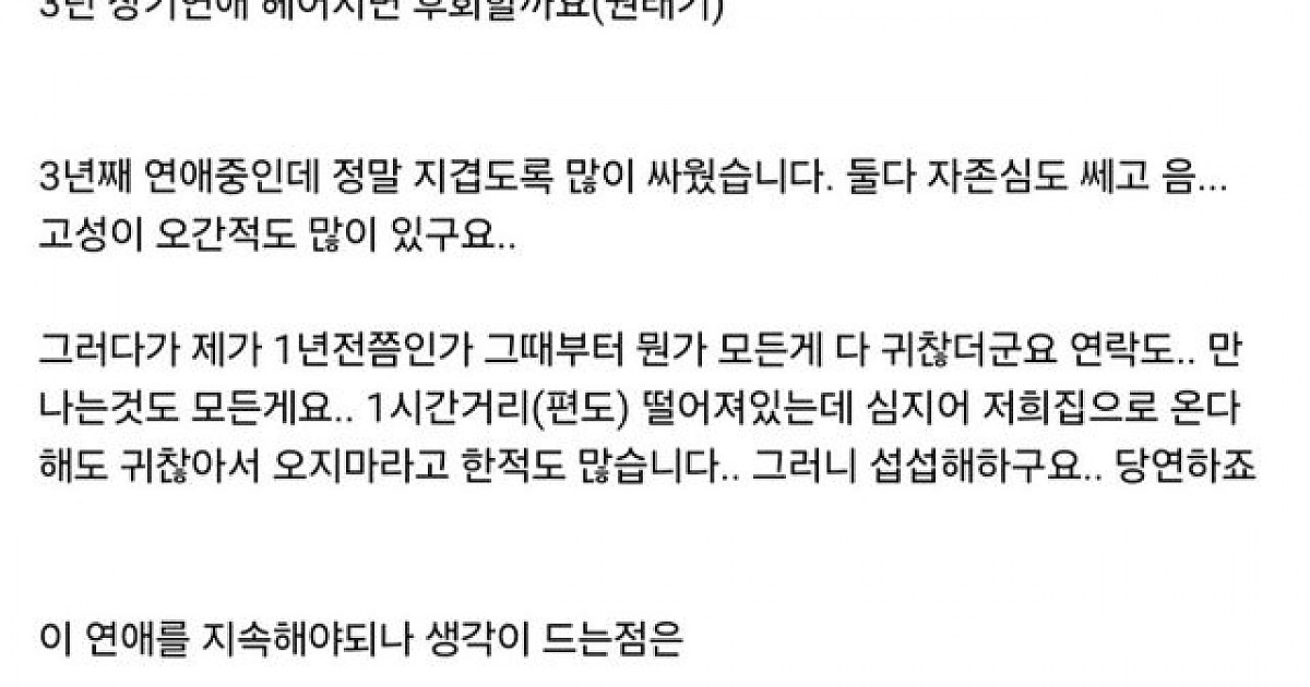 3년 장기연애 했는데 헤어지면 후회할까