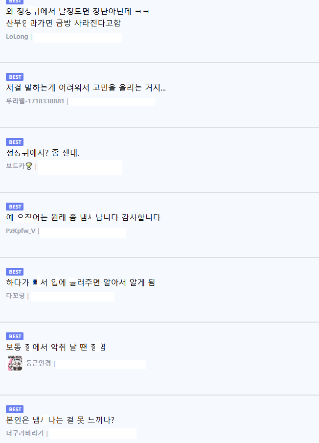 여자친구의 ㅂㅈ어 냄ㅅh 고민(+댓 반응)