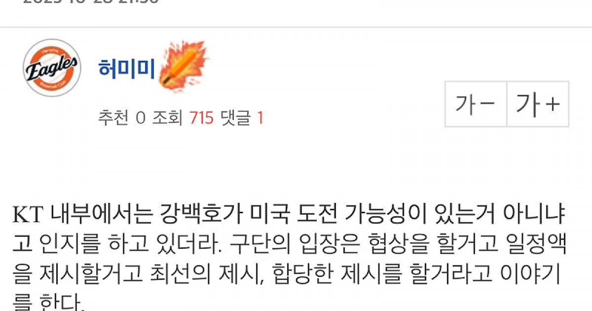 야구부장이 강백호관련 올린 신빙성있는 현재 찌라시
