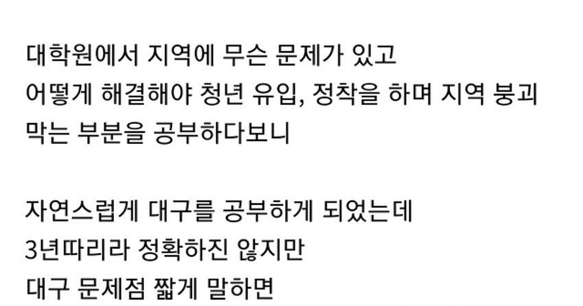 대구현실에 좌절감이 든다는 대학원생