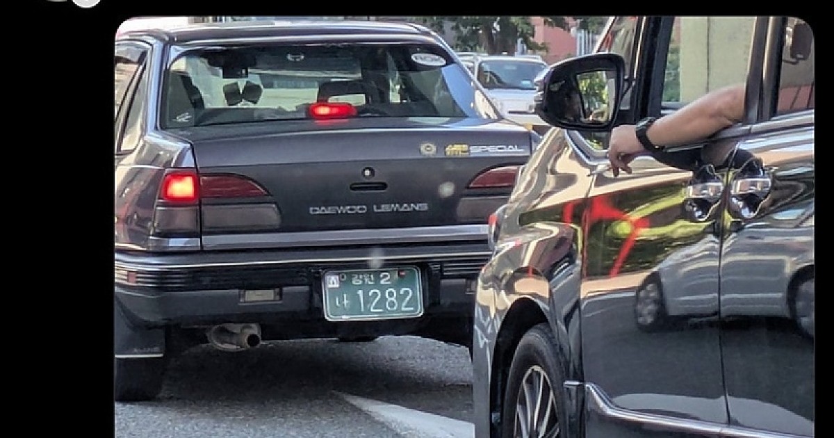 일본 도로에서 본 한국 자동차