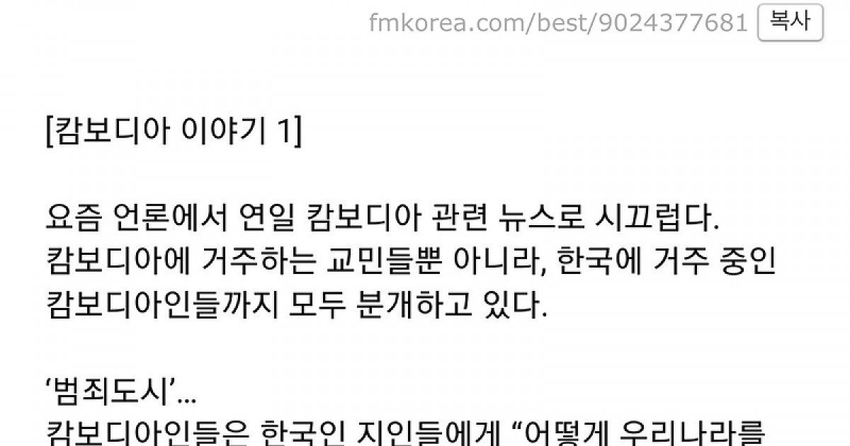 한 캄보디아에 사는 현지 한국인이 직접 쓴 교민으로서 입장