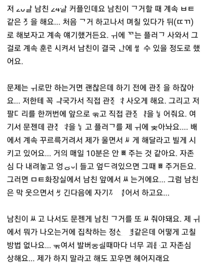 남친이 ㅅㅅ할때 자꾸 저 ㅁ어놓고 ㄸㄲ에 ㄲ아요