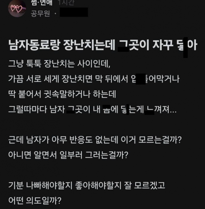 남자동료랑 장난 치는데 그게 자꾸 ㄷ아..