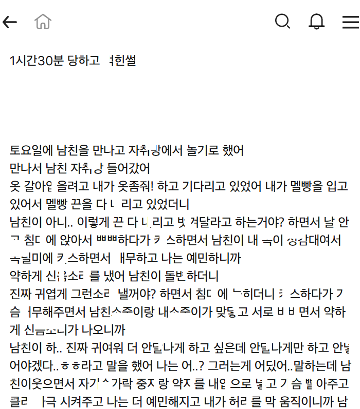 남친한테 1시간 30분 동안 ㄷ하고 ㅁ힌 썰