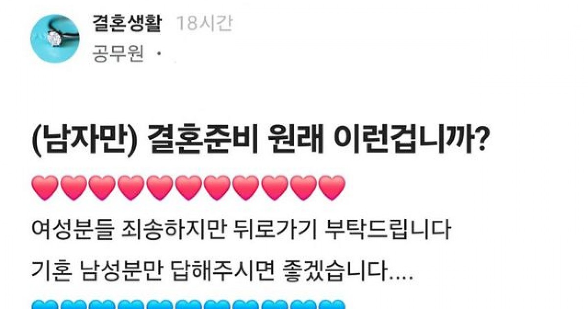 결혼 준비하다가 현타가 오지게 와버린 공무원 블라남