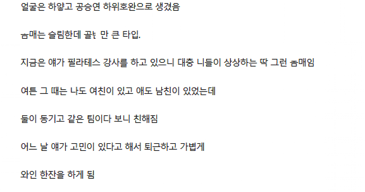 남친 있었던 입사 동기녀와 원ㄴ잇 한 썰