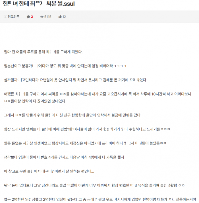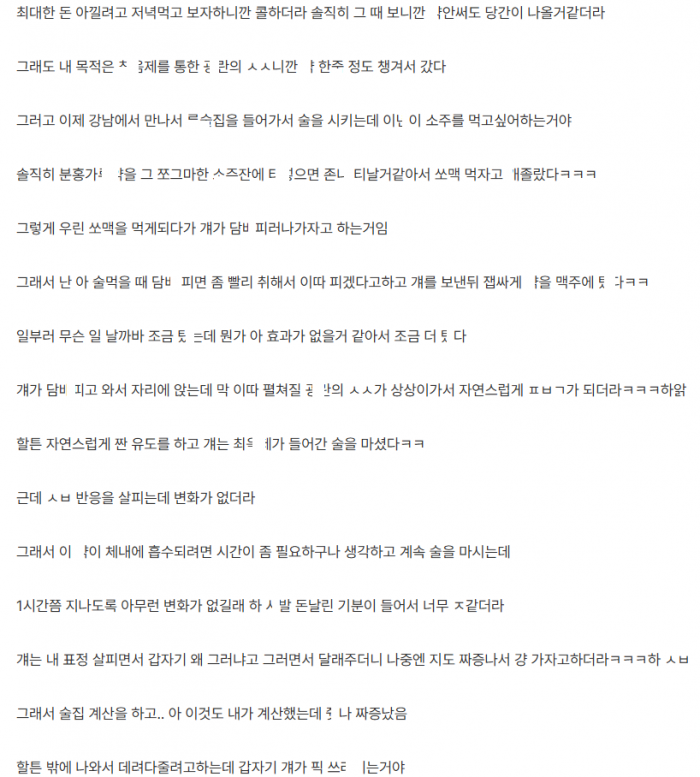 ㅅ마시면서 헌ㅌ녀한테 최ㅇ제 써본 썰