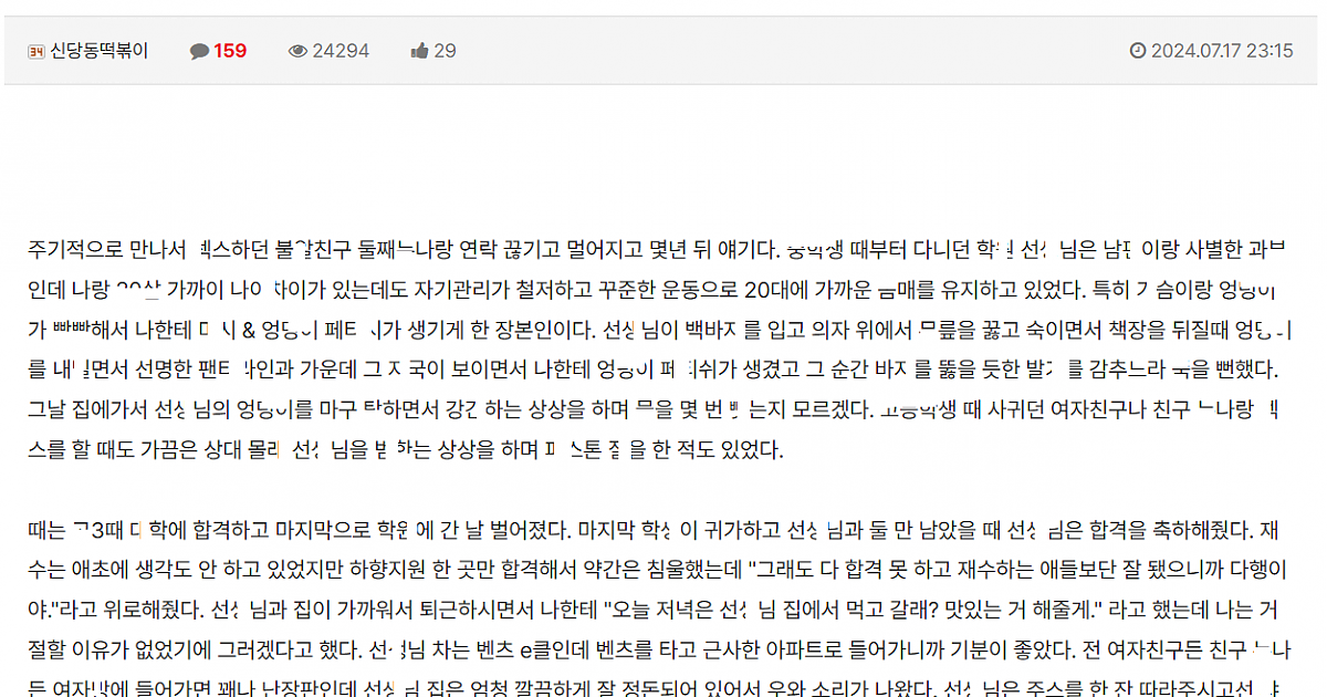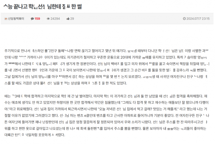 수ㄴ 끝나고 학ㅇ여선ㅅ님집에서 선ㅅ님한테 ㅈ싸한썰