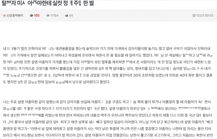 탈ㅂ자 미ㅅ 아ㅈ마랑 ㅅㅅ하면서 실컷 정ㅇ 주ㅇ한 썰