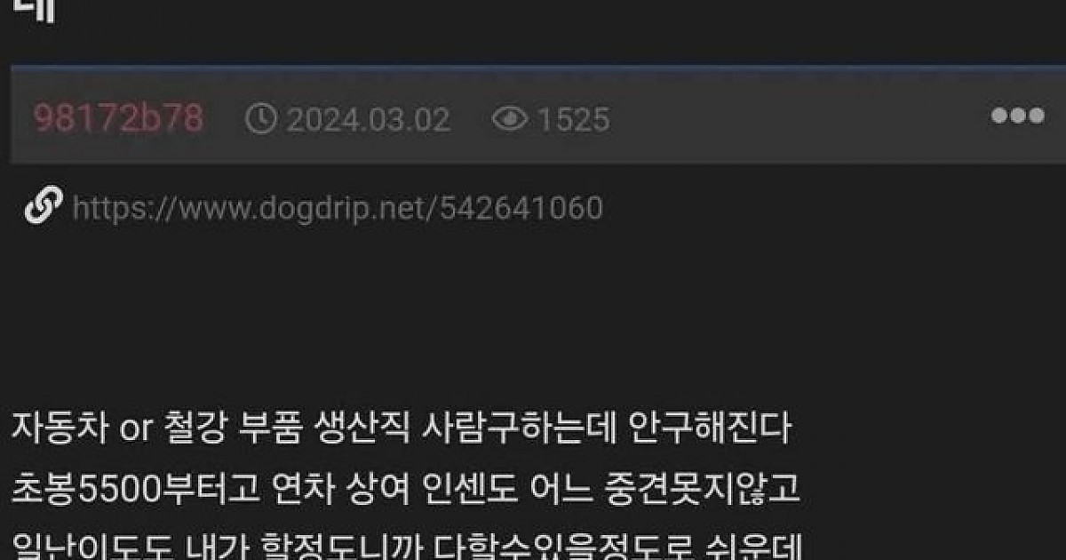 생산직 직원구하는데 연봉 5500이여도 안구해지네