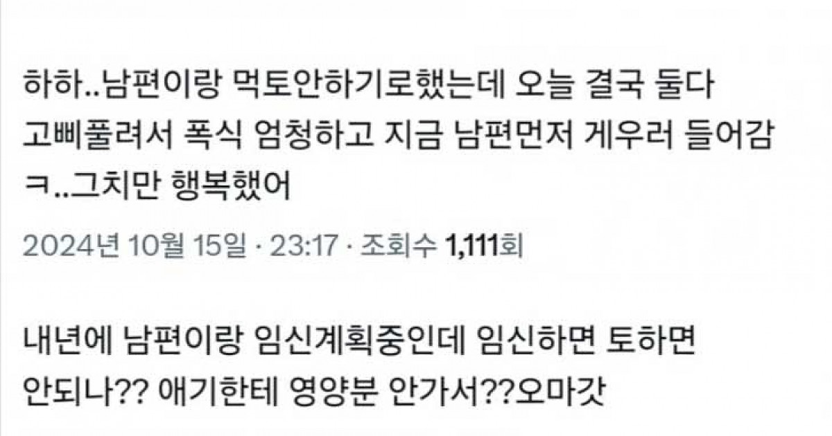 남편과 같이 먹토하는 여자