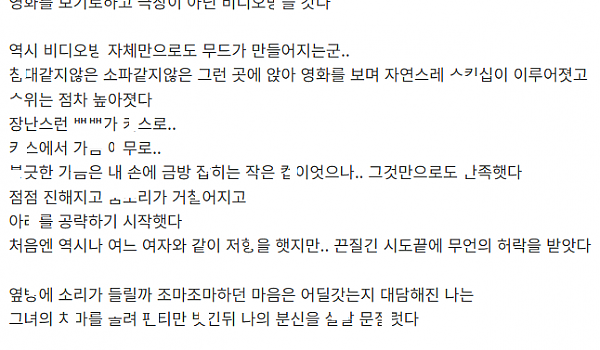 어ㅍ로 만난 ㅈ소 대리녀와 ㅁㅌ 가서 속도위반한 이야기