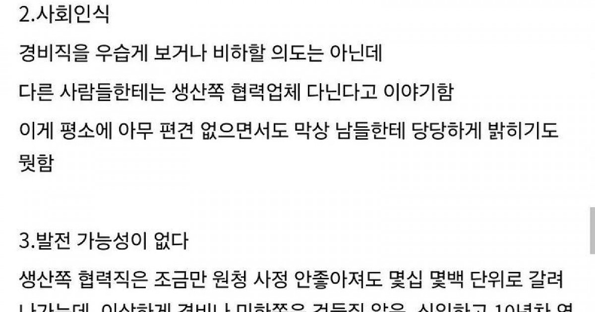 대기업 공장 보안대원 후기