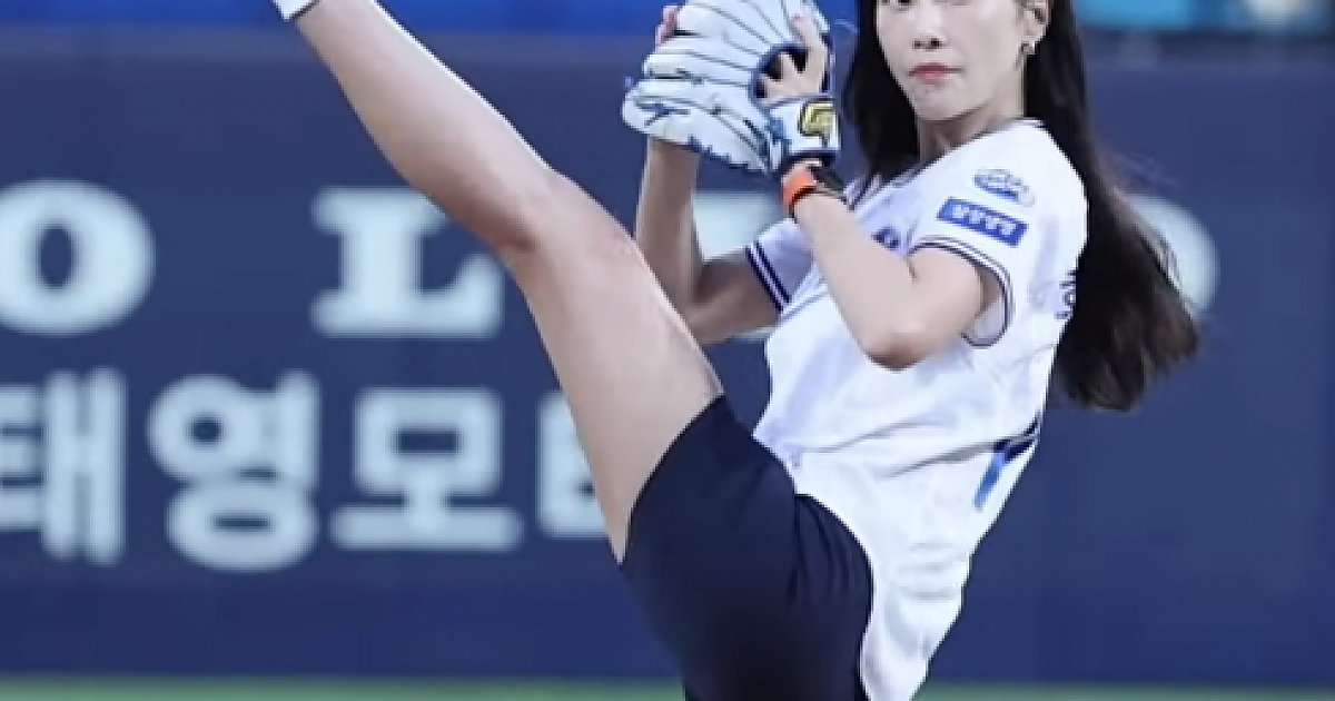 배우 홍수현, 삼성-롯데전 시구자로 등장…대구 라이온즈파크 달궜다